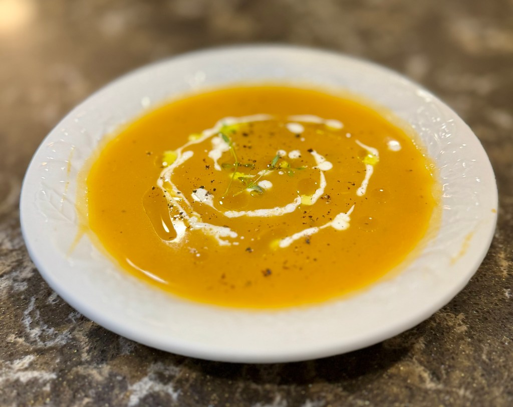 With winter showing up too early and uninvited here in the midwest, it is definitely time for soup season! My grandfather used to eat soup almost every day for dinner and I have started eating it almost every day during the cold months. I will fully admit that I was never a big fan of butternut squash because I always found it too sweet. However, since I started making this super easy soup, I have fallen in love with butternut squash and this is now my go to recipe for comfort food, without all of the calories! This recipe is super easy to make and is sure to warm your tummies!! You can check out the video of how I made this soup on my instagram and Facebook. Link at the bottom of the recipe.